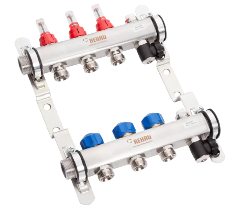 Distribuitoarele pentru incalzire prin pardoseala Rehau HKV-D sunt fabricate din otel de inalta calitate cu debitmetru pentru separarea fiecarui circuit de incalzire.