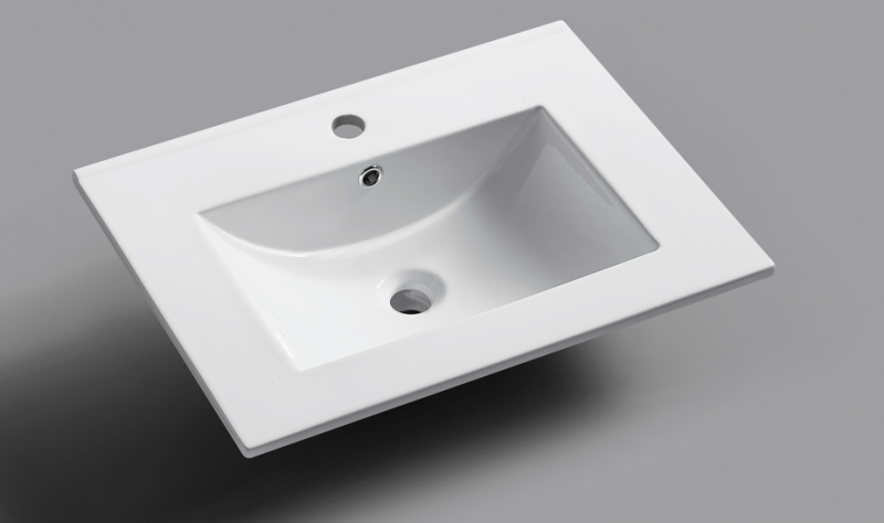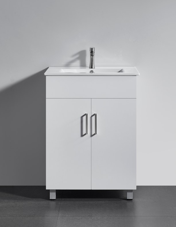 Mobilier integral din MDF cu lavoar ceramic, culoare alb, dimensiuni 600X460X850mm.