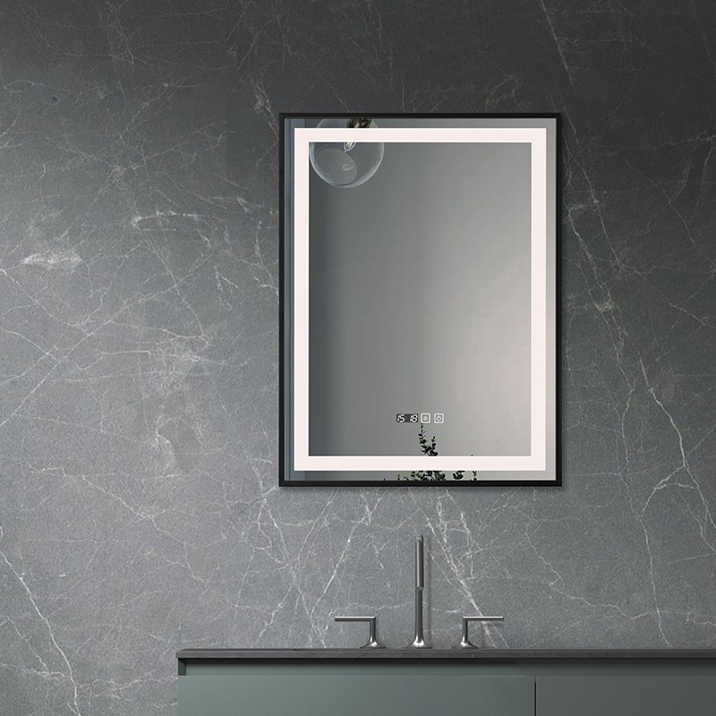 Comentarii OGLINDA BAIE INFINITY DREPTUNGHIULARA, ILUMINARE LED 3 CULORI, 60X80 CM, RAMA ALUMINIU NEAGRA, FUNCTIE DEZABURIRE, CEAS