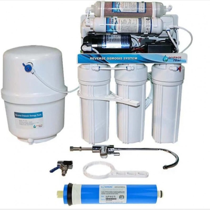 Pachetul include: set complet de cartuse, membrana osmotica, adaptoare, baterie, cheie si rezervor.