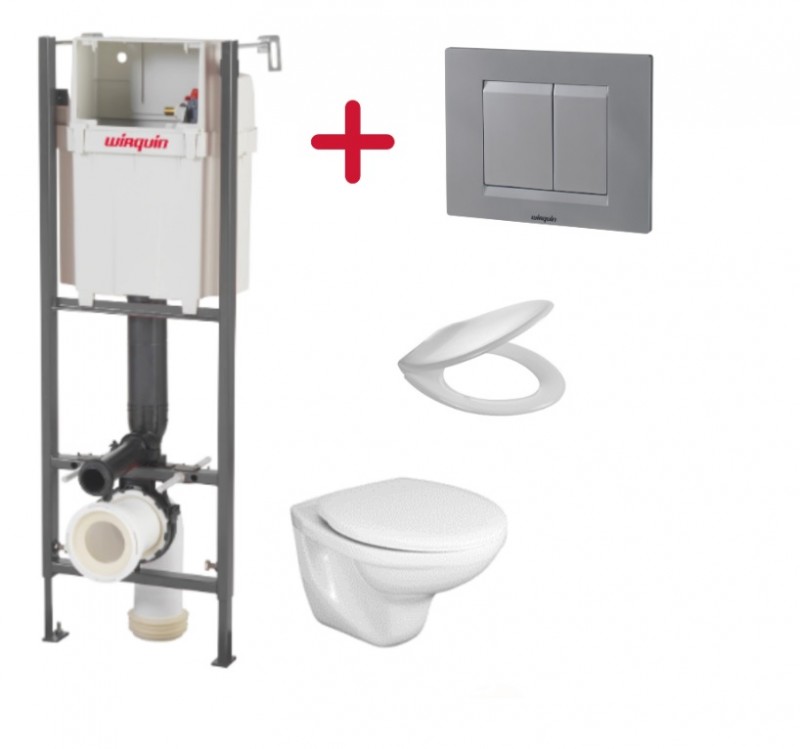 Pachetul contine set rezervor incastrat Wirquin Lineo, WC, capac WC, manson evacuare, racord alimentare, clapeta actionare.