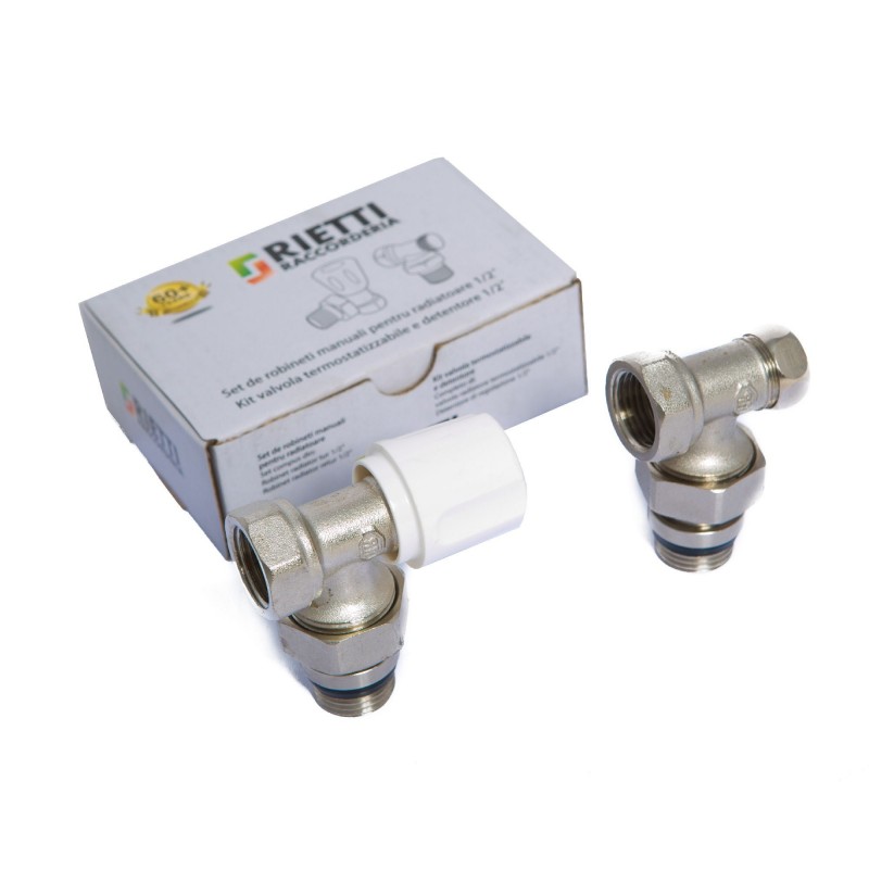 Setul de robineti calorifer retur coltar 1/2" Rietti Racorderia este alegerea optima din punct de vedere calitate pret.